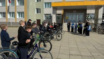 В Пудоже автоинспекторы и юные помощники напомнили школьникам о правилах управления двухколёсным транспортом