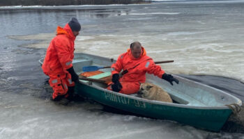 Провалившихся на льду озера собак спасли под Петрозаводском