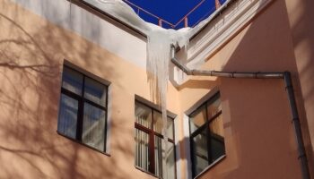 Огромная сосулька повисла под крышей ПетрГУ