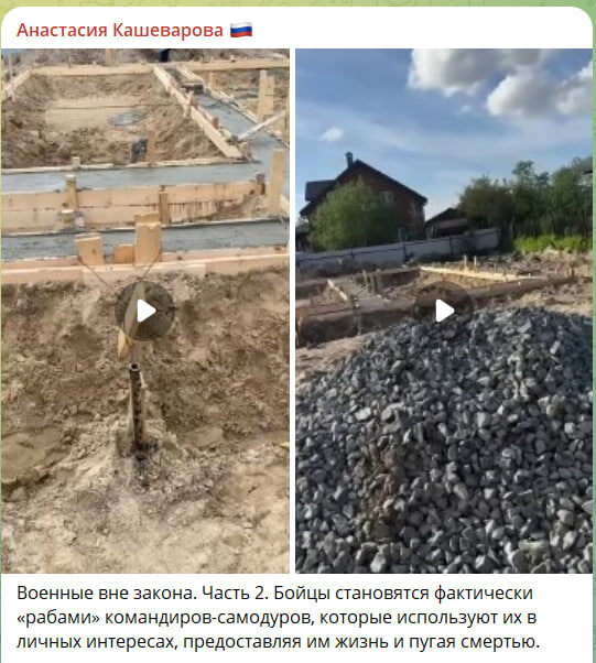 Отлично же подписать контракт, получить миллионные выплаты, а потом не идти воевать, а заливать бетон в татарском селе товарищу полковнику. При этом бойцы числились, что находятся на СВО и ведут активные наступательные действия. Видео стройки публикую. <…> Бойцы становятся фактически «рабами» командиров-самодуров.