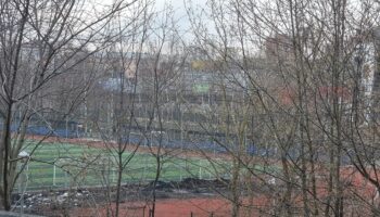 Черный снег остается на стадионе в центре Петрозаводска